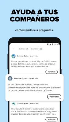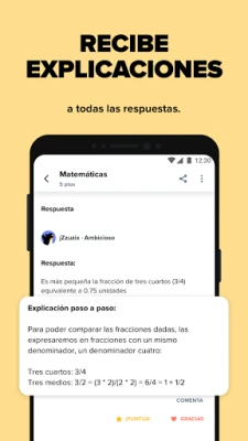 La asistencia para tus tareas escolares está siempre al alcance. Con Brainly, resolver ejercicios se simplifica extraordinariamente: simplemente captura una imagen 📸, dicta tu consulta 🗣 o redacta tu pregunta ✏️ para desbloquear soluciones detalladas. Este recurso invaluable opera las 24 horas del día, asegurando que el apoyo académico esté disponible en cualquier momento y lugar. Experimenta la rapidez y fiabilidad de obtener respuestas moderadas y explicaciones paso a paso en cuestión de minutos, lo que te permitirá acelerar tu comprensión y dominio de cualquier asignatura. Además, contribuye con tu propia experiencia y gana reconocimiento ayudando a otros.