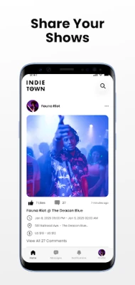 Más allá de la exhibición, Indie Town fomenta una auténtica camaradería. Conoce a nuevos amigos, envía mensajes directos y apoya a tus colegas con "me gusta", comentarios y compartiendo sus publicaciones y eventos. ¿Planeando una gira? Encuentra bandas locales en nuevas ciudades para intercambiar conciertos o a esos aliados imprescindibles que podrían ofrecerte un lugar donde descansar tras un show memorable. Navegando por tu *feed*, siempre descubrirás personas, música, espectáculos y arte que resuenan contigo.