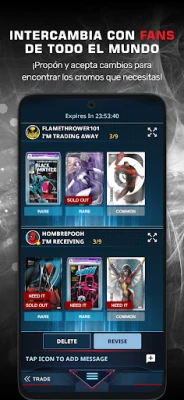 La experiencia va más allá de la mera adquisición. Conecta con una vibrante comunidad global de fans, donde el intercambio de tarjetas es tan estratégico como gratificante. Participa en eventos exclusivos dentro de la aplicación y completa misiones temáticas para desbloquear recompensas inigualables, algunas incluso te darán la oportunidad de ganar cajas físicas de Topps. Asciende en las temporadas temáticas, perfecciona tus habilidades coleccionistas y fusiona tus cartas de Marvel Collect! para crear versiones aún más originales, dando vida a tu colección de una manera única. Incluso puedes unirte a eventos de Watch Party para coleccionar en tiempo real y chatear en vivo con otros aficionados.
