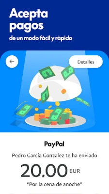 Mover dinero nunca ha sido tan sencillo y seguro. Envía fondos a tus seres queridos casi en cualquier rincón del mundo con una interfaz intuitiva que añade un toque lúdico con animaciones y emojis. Con la *nueva* mensajería bidireccional, hacer pagos se convierte en una conversación, eliminando la incomodidad. ¿Necesitas enviar dinero a destinos más lejanos? Con el servicio de Xoom integrado en PayPal, puedes llegar a más de 130 países, incluso si el receptor no dispone de una cuenta PayPal o Xoom. Además, recibir dinero es igual de fácil; comparte tu enlace "Hazme un PayPal" y simplifica la vida de quienes quieren enviarte fondos.