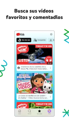 Empodera la curiosidad de tus hijos y fomenta su crecimiento en un entorno digital hecho a su medida. **YouTube Kids**, creado por **Google**, ofrece un universo de videos donde la imaginación y el aprendizaje no tienen límites, siempre bajo tu atenta guía. Nuestra plataforma está diseñada para que los más pequeños exploren sus intereses de forma segura, descubriendo contenido enriquecedor que estimule su mente y desarrolle nuevas habilidades, todo dentro de un catálogo que has aprobado previamente. Bríndales la confianza para navegar, explorar y expresarse en su propia burbuja digital, con herramientas intuitivas pensadas para sus manitas.